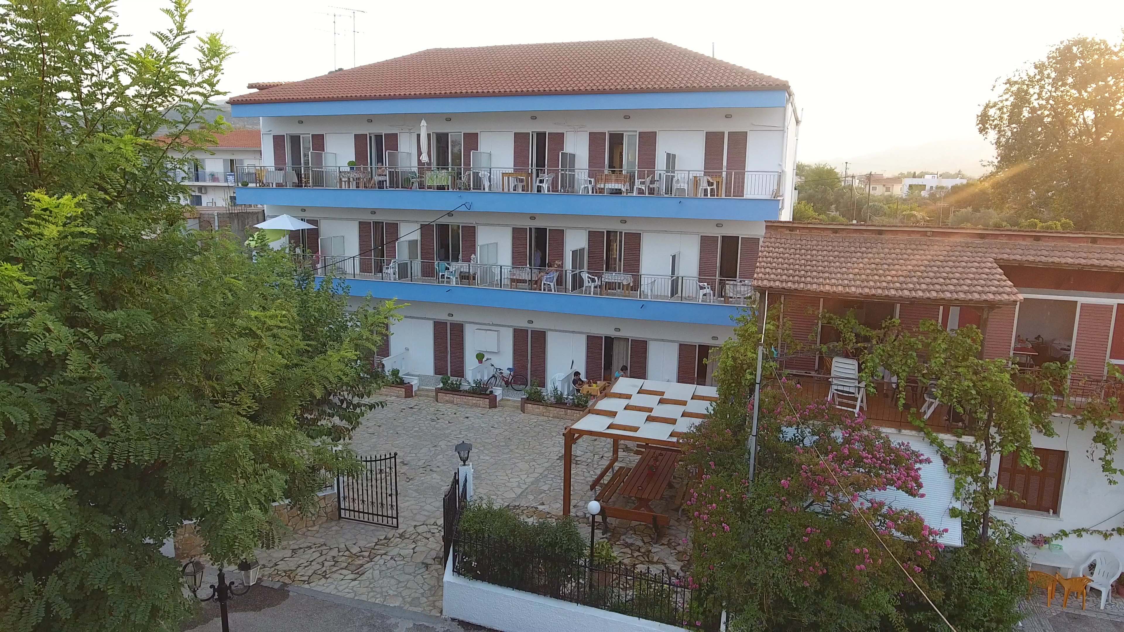Το συγκρότημα των 18 διαμερισμάτων μας απέχει μόλις 50μ. από την παραλία και περιβάλλεται από απέραντο πράσινο. Απολαύστε τα άνετα, πολυτελή και πλήρως επιπλωμένα διαμερίσματα των 1 και 2 τρίκλινων δωματίων, τους καλά σχεδιασμένους βοηθητικούς χώρους (πλήρως εξοπλισμένη κουζίνα με ψυγείο, μπάνιο), εγκαταστάσεις (ιδιωτικό τηλέφωνο), ευρύχωρες και συμπαθητικές βεράντε.