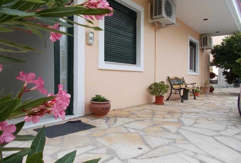 (πλησίον σε στάση λεωφορείων) λίγα μέτρα από το κέντρο, σε πανέμορφο περιβάλλον.